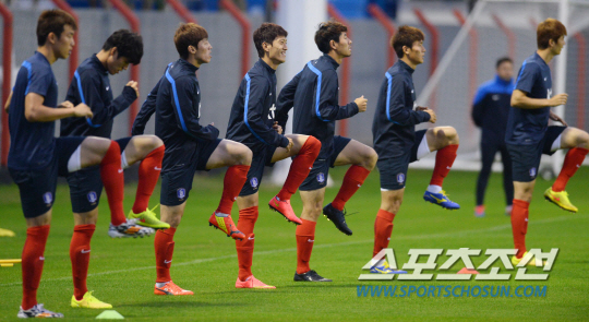 2014 브라질월드컵 홍명보호가 14일 오전(한국시간) 브라질 훈련 캠프인 이구아수 플라멩고 경기장에서 3일째 훈련에 돌입했다. 태극전사들이 가벼운 스트레칭으로 훈련을 시작하고 있다.