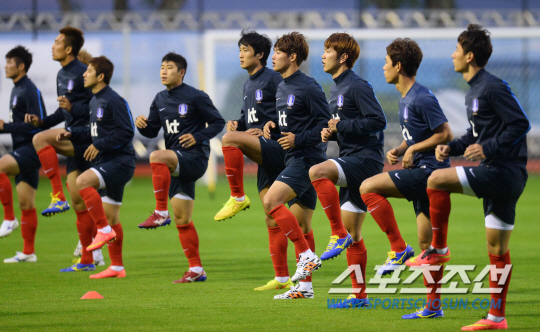 2014 브라질월드컵 홍명보호가 14일 오전(한국시간) 브라질 훈련 캠프인 이구아수 플라멩고 경기장에서 3일째 훈련에 돌입했다. 태극전사들이 가벼운 스트레칭으로 훈련을 시작하고 있다.
