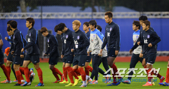 2014 브라질월드컵 홍명보호가 14일 오전(한국시간) 브라질 훈련 캠프인 이구아수 플라멩고 경기장에서 3일째 훈련에 돌입했다. 본격적인 훈련에 앞서 홍명보 감독이 훈련내용에 대해 설명하고 있다.