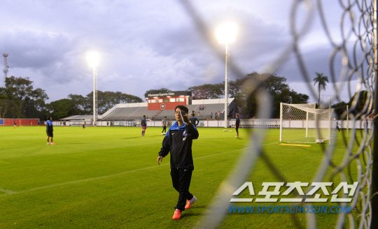 2014 브라질월드컵 홍명보호가 14일 오전(한국시간) 브라질 훈련 캠프인 이구아수 플라멩고 경기장에서 3일째 훈련에 돌입했다. 축구협회 관계자가 취재진의 퇴장을 안내하고 있다. 이날 훈련은 초반 15분만 취재진에게 공개됐다.