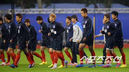 2014 브라질월드컵 홍명보호가 14일 오전(한국시간) 브라질 훈련 캠프인 이구아수 플라멩고 경기장에서 3일째 훈련에 돌입했다. 본격적인 훈련에 앞서 홍명보 감독이 훈련내용에 대해 설명하고 있다.