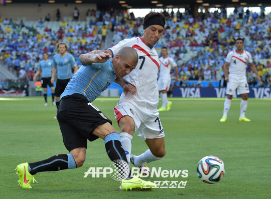 우루과이의 오른쪽 수비수 막시밀리아노 페레이라(30·벤피카)가 2014년 브라질월드컵 1호 퇴장의 불명예를 안았다.