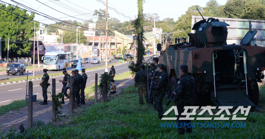 파라과이, 아르헨티나 3국과 국경을 맞대고 있는 이구아수는 세계적으로 유명한 '이구아수 폭포'가 있는 관광도시다. 때문에 외국인에게 호의적이고 큰 사건 사고도 없다. 인접국 파라과이의 상업도시인 시우다드데에스테와 이구아수폭포 관광객들의 씀씀이로 겨우 버티고 있는 아르헨티나의 빈곤한 도시 푸에르토 이과수에 비해 여유가 넘친다. 지난 12일 현지에 입성한 홍명보호도 현지 경찰, 군병력의 보호 속에 큰 사건 없이 대회 준비에 매진하고 있다. 긴장의 끈은 놓을 수 없다. 잠깐의 안심이 화를 불러올 수 있다. 2014년 브라질월드컵 개막 뒤에도 치안 불안은 해결되지 않고 있다. 홍명보호의 훈련이 거듭되면서 현지 경찰, 군인의 경비도 강화됐다. 훈련장인 플라멩구 스타디움 주변 도로 전면통제는 확대되고 있다.