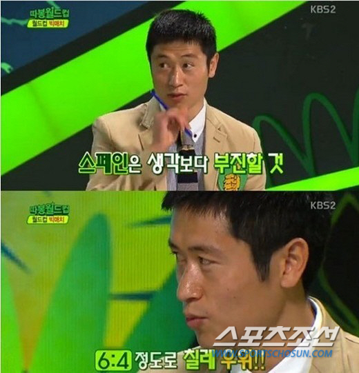 이영표는 스페인과 칠레의 경기에 대해서도 "주기라는 것이 있다. 프랑스나 아르헨티나가 그랬다"라며 "최고의 시절 후 암흑기가 온다. 스페인 몰락 타이밍은 지금"이라며 칠레의 승리를 예측했다. 이영표의 예측이 맞아떨어질지 궁금하다.