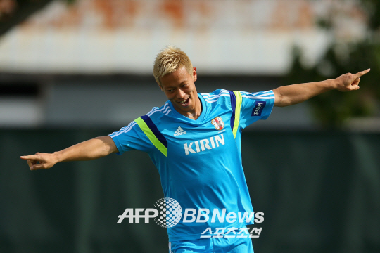 일본은 15일 오전 10시(한국시각) 브라질 헤시피 아레나 페르남부쿠에서 벌어지고 있는 코트디부아르와의 2014년 브라질월드컵 조별리그 C조 1차전에서 전반을 1-0으로 리드한 채 마쳤다. 코트디부아르가 화려한 개인기를 앞세워 경기의 주도권을 잡는 듯 했다. 그러나 혼다의 화려한 왼발이 경기 양상을 돌려놓았다. 전반 16분이었다. 나가토모가 왼쪽에서 짧게 밀어준 볼을 침투하던 혼다가 잡아 지체없이 왼발슈팅을 날렸다. 바리 골키퍼가 꼼짝도 하지 못한 골이었다.