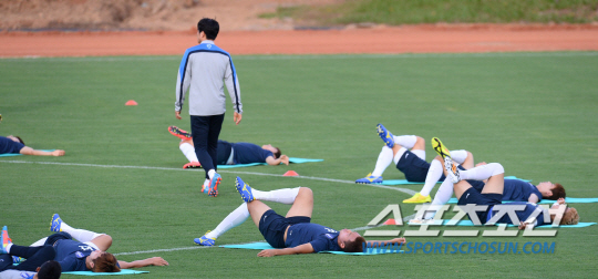 2014 브라질월드컵 홍명보호가 16일 오전(한국시간) 러시아와의 격전지가 될 브라질 쿠이아바에 도착해 첫 훈련을 실시했다. 태극전사들이 쿠이아바 마투그로수 연방대학 경기장에서 스트레칭으로 훈련을 준비하고 있다.
