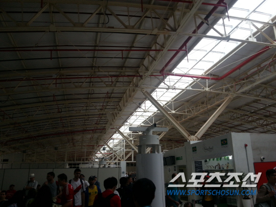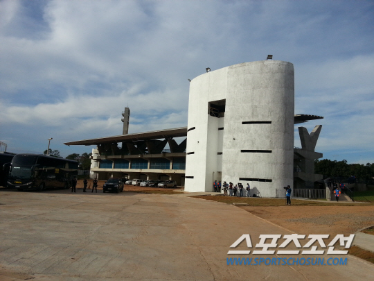 ◇월드컵대표팀이 16일(한국시각) 브라질 쿠이아바에서의 첫 훈련을 위해 사용한 마투그로수연방대학 운동장은 채 완공되지 않은 채 각국 대표팀의 훈련장으로 사용되고 있다. 쿠이아바(브라질)=박상경 기자 ppark@sportschosun.com