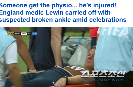 16일(이하 한국시각) 영국 일간지 데일리미러는 이탈리아전에서 발목을 다친 물리치료사 르윈이 잉글랜드로 돌아갔다고 보도했다. 말그대로 황당한 사건이었다. 15일 이탈리아전에서 잉글랜드는 전반 37분 뒤 대니얼 스터리지의 동점골로 균형을 맞췄다. 이때 르윈은 벤치에서 대표팀 동료와 골 세리머니를 함께 펼치던 중 뛰어올랐다가 착지하는 과정에서 발목을 접질렸다. 르윈은 경기가 재개된 뒤에도 한동안 벤치에 누워 응급치료를 받았다. 결국 르윈은 발목에 부목을 댄 채로 들것에 실려 나갔고, 고국으로 돌아가게 됐다. 르윈은 이 사건으로 유명인사 반열에 올랐다.