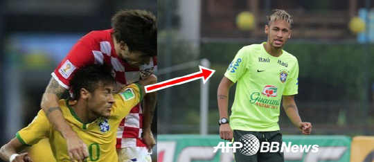 ○…'슈퍼스타' 네이마르(바르셀로나)가 우승을 향한 '금빛' 스타일 변신을 마쳤다. 13일 크로아티아와의 개막전에서 2골을 터뜨린 네이마르는 15일 헤어스타일을 확 바꾸고 훈련장에 등장했다. 머리 옆쪽을 바짝 쳐내고 앞머리를 금발로 물들였다. 바르셀로나 절친 동료인 수비수 다니 알베스는 머리를 은빛으로 바꾸었다. 많은 축구스타들이 그렇듯 네이마르 역시 헤어스타일 변화에 관심이 지대하다. 영국 일간 데일리메일은 '네이마르의 금발이 1998년 프랑스월드컵 당시 행운을 기원하는 루마니아 선수단의 금빛 염색을 떠올리게 한다'고 언급했다.