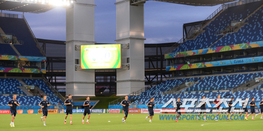 2014브라질월드컵 조별예선 H조 1차전에서 한국과 맞붙을 러시아대표팀이 경기를 하루 앞둔 17일 오전(한국시간) 쿠이아바 아레나 판타날 경기장에서 적응훈련을 하고있다.