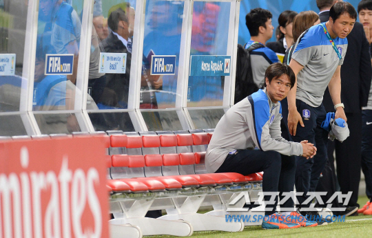 [월드컵포토] 홍명보 감독 '벤치에 한번 앉아 볼까?'