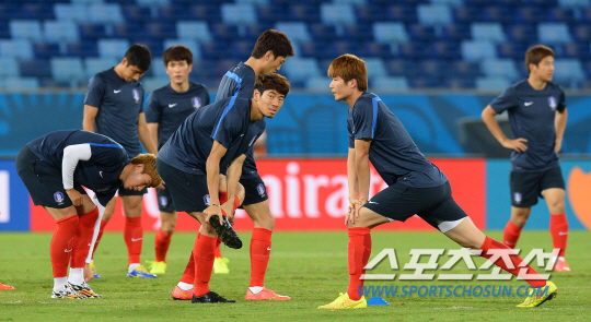 2014 브라질월드컵 홍명보호가 러시아와 결전을 하루 앞둔 17일 오전(한국시간) 쿠이아바 아레나 판타날 경기장에서 적응훈련을 실시했다. 하대성이 훈련중 갑작스런 왼발목 통증을 호소해 최종훈련에서 제외됐다.