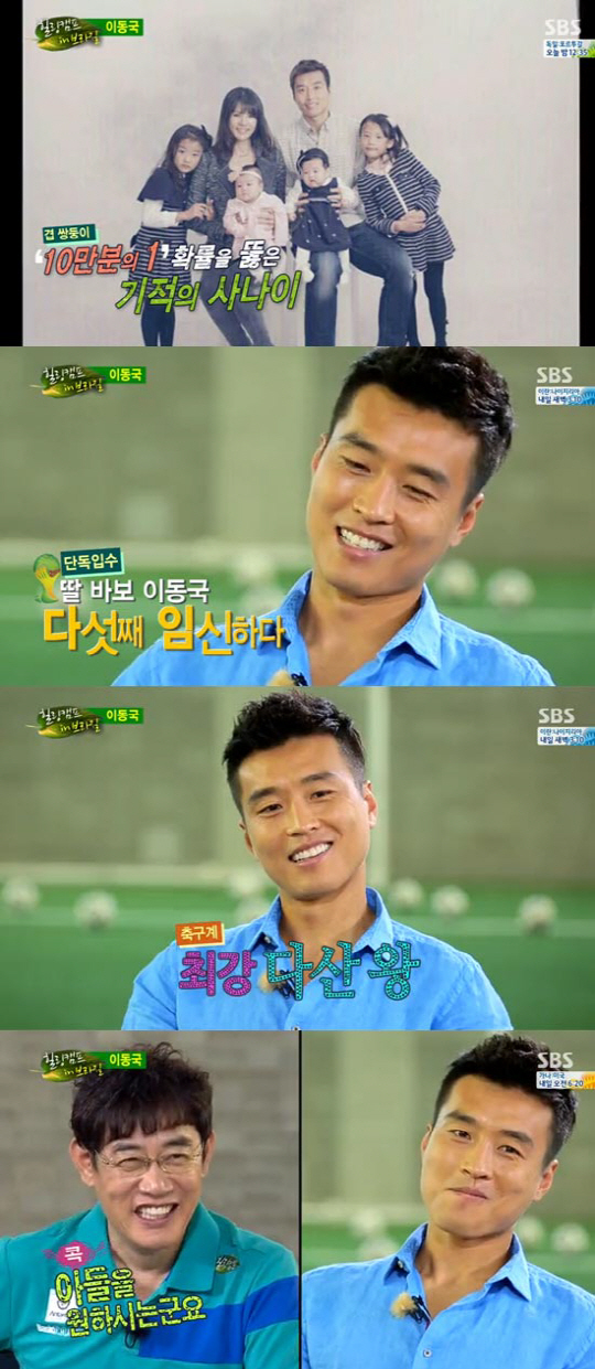 이날 "다행이 이번에는 한명이다"고 운을 뗀 이동국은 '네 명이 딸인데 이번에는 아들을 원하냐'는 질문에 "아들이든 딸이든 상관없다. 그런데 휴가 때 아이들과 수영장을 자주 다니는데 계산 후에 남자 쪽과 여자 쪽으로 갈라질 때 조금 외롭다"며 내심 아들이었으면 좋겠다는 바람을 드러냈다.