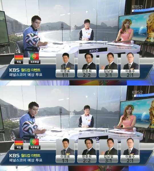 이용수 위원은 "독일이 월드컵 준비를 할 줄 아는 팀이다. 독일이 공격력에서 포르투갈을 압도할 것"이라며 독일의 2-1 승리를 전망했다. 김남일 위원은 "독일의 최강 미드필더가 포르투갈을 압도한다"며 "독일이 3-1로 이길 것"이라고 예상했다.