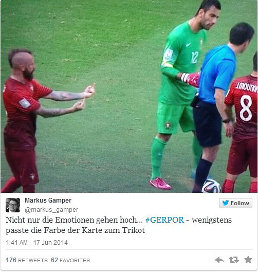 포르투갈은 만신창이다. 이미 페페의 결장이 확정됐고, 여기에 우구 알메이다(베식타스)와 파비우 코엔트랑(레알 마드리드)도 경기 도중 부상으로 교체돼 다음 경기 출전을 장담할 수 없다. 그런데 포르투갈의 핵심 미드필더 메이렐레스마저 징계를 받는다면 주전멤버 4명이 빠지는 셈이다. 포르투갈의 16강 좌절 운명은 이미 정해진 듯하다.