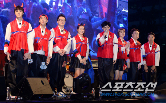 18일 오전 서울 광화문광장에서 브라질 월드컵 조별예선 첫 경기 한국 대 러시아 전을 맞아 월드컵 거리응원이 펼쳐졌다. 거리응원전은 서울 광화문광장과 영동대로를 비롯해 전국 20여곳에서 펼쳐졌다. 무한도전 팀이 거리응원에 참여해 함께 응원을 펼치고 있다.