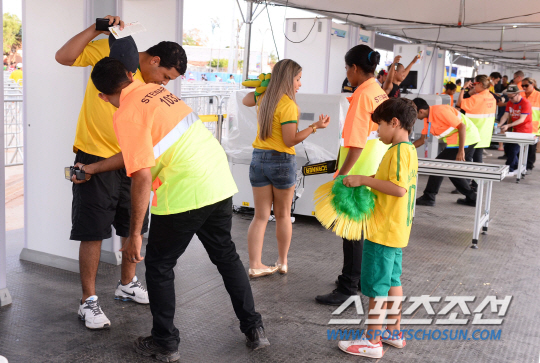 2014 브라질월드컵 조별예선 H조 1차전 한국과 러시아의 경기가 18일 오전 (한국시간) 쿠이아바 아레나 판타날 경기장에서 열렸다. 경기를 관전하러 축구팬들이 입구에서 철저한 검색을 받고 있다.