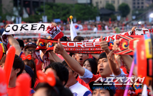 [월드컵포토] 광화문 응원 열기 고조 (한국:러시아)