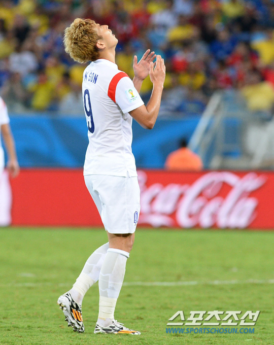 2014 브라질월드컵 조별예선 H조 1차전 대한민국과 러시아의 경기가 18일 오전 (한국시간) 쿠이아바 아레나 판타날 경기장에서 열렸다. 대한민국의 손흥민이 슈팅이 빗나가자 아쉬워 하고있다. 쿠이아바(브라질)=최문영 기자 deer@sportschosun.com /2014.06.18/