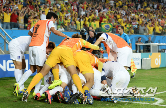 2014 브라질월드컵 조별예선 H조 1차전 한국과 러시아의 경기가 18일 오전 (한국시간) 쿠이아바 아레나 판타날 경기장에서 열렸다. 한국의 이근호가 팀의 첫번째 골을 성공시키고 환호하고 있다.
