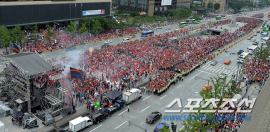 [월드컵포토] 광화문 광장 가득 찬 붉은 물결 (한국:러시아)