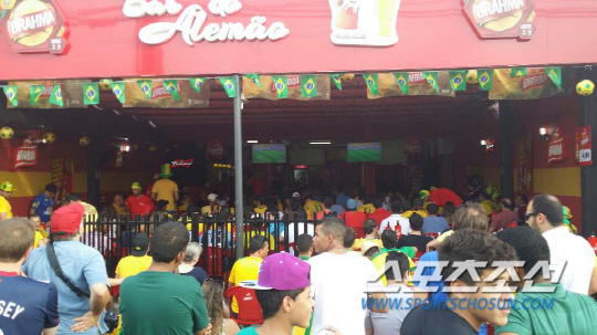 ◇아레나 판타날 인근 펍에서 브라질-멕시코전을 관전한 브라질 현지 팬들 대부분은 이날 러시아와 맞붙은 한국을 응원했다. 쿠이아바(브라질)=박상경 기자 ppark@sportschosun.com
