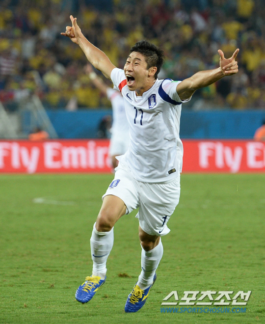 2014 브라질월드컵 조별예선 H조 1차전 한국과 러시아의 경기가 18일 오전 (한국시간) 쿠이아바 아레나 판타날 경기장에서 열렸다. 한국의 이근호가 팀의 첫번째 골을 성공시키고 환호하고 있다. 쿠이아바(브라질)=최문영 기자 deer@sportschosun.com