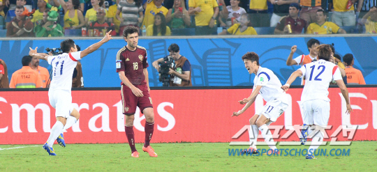2014 브라질월드컵 조별예선 H조 1차전 한국과 러시아의 경기가 18일 오전 (한국시간) 쿠이아바 아레나 판타날 경기장에서 열렸다. 한국의 이근호가 팀의 첫번째 골을 성공시키고 환호하고 있다. 쿠이아바(브라질)=최문영 기자 deer@sportschosun.com /2014.06.18/