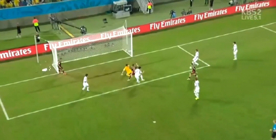 문전 혼전 상황이었다. 정성룡의 몸을 맞고 나온 볼을 김영권이 뽑아냈다. 이 때 볼이 러시아의 안드레이 예셴코의 몸에 맞았다. 이 볼을 케르자코프가 달려들어 따낸 뒤 골을 만들어냈다. 문제는 볼이 예셴코의 몸에 맞는 순간 케르자코프의 위치였다. 케르자코프는 정성룡 골키퍼와 이 용 사이에 서 있었다. 이 용과 케르자코프의 위치가 관건이었다. 다양한 각도에서 보면 케르자코프의 몸통이 이 용보다 살짝 앞에 있는 것처럼 보인다. 부심으로서는 오프사이드 깃발을 들어도 무난한 상황이었다.