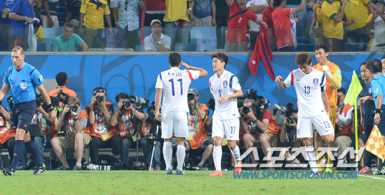2014 브라질월드컵 조별예선 H조 1차전 한국과 러시아의 경기가 18일 오전 (한국시간) 쿠이아바 아레나 판타날 경기장에서 열렸다. 한국의 이근호가 팀의 첫번째 골을 성공시키고 환호하고 있다.