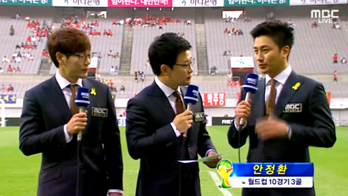 이날 MBC 해설위원 안정환과 송종국은 브라질 월드컵 첫 한국전을 열띤 모습으로 해설했다.
