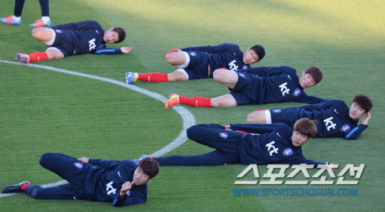 2014 브라질월드컵 조별예선 1차전에서 러시아를 상대로 1대1 무승부를 거둔 홍명보호가 19일 오전(한국시간) 훈련캠프인 이구아수 플라멩고 경기장에 도착해 회복훈련을 실시했다. 박종우가 스트레칭으로 몸을 풀고 있다.