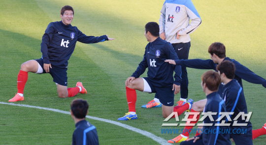 2014 브라질월드컵 조별예선 1차전에서 러시아를 상대로 1대1 무승부를 거둔 홍명보호가 19일 오전(한국시간) 훈련캠프인 이구아수 플라멩고 경기장에 도착해 회복훈련을 실시했다. 박주호가 스트레칭으로 몸을 풀고 있다.