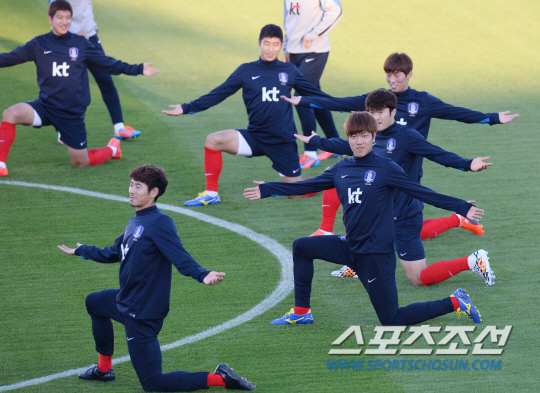 2014 브라질월드컵 조별예선 1차전에서 러시아를 상대로 1대1 무승부를 거둔 홍명보호가 19일 오전(한국시간) 훈련캠프인 이구아수 플라멩고 경기장에 도착해 회복훈련을 실시했다. 김영권이 스트레칭으로 몸을 풀고 있다.