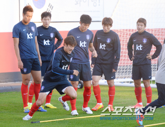 2014 브라질월드컵 조별예선 1차전에서 러시아를 상대로 1대1 무승부를 거둔 홍명보호가 19일 오전(한국시간) 훈련캠프인 이구아수 플라멩고 경기장에 도착해 회복훈련을 실시했다. 박종우가 코어트레이닝으로 근력을 다지고 있다.