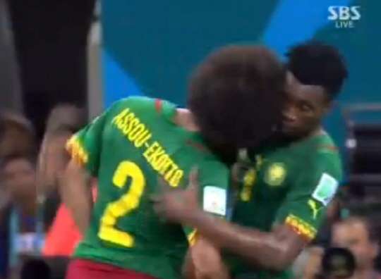 상대 문전에서 아수 에코토와 무칸조가 이야기를 나누는가 싶더니, 몸싸움이 시작됐다. 무칸조의 '버럭' 한마디에 흥분한 아수 에코토가 머리를 곧바로 들이받았다. 가슴을 떠밀며 몸싸움이 치열해지려는 찰라, 동료 웨보가 황급히 달려와 싸움을 뜯어말렸다. 경기 직후 화해 제스처에도 불구하고 아수 에코토는 표정을 딱 굳힌 채 라커룸으로 들어갔다. 1990년 이탈리아월드컵에서 8강에 오르며 '검은 돌풍'의 시작점이 됐던 카메룬이 자멸하는 순간이었다.