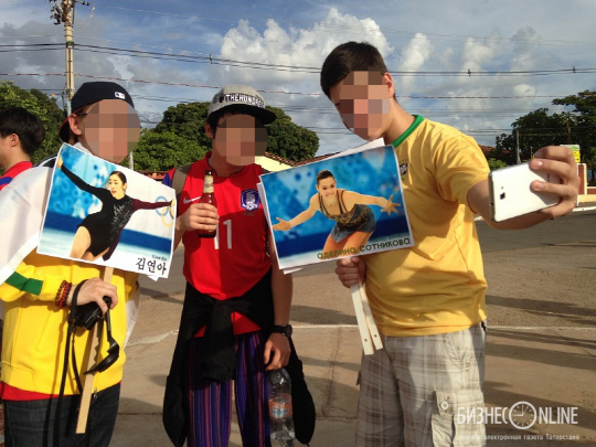 러시아 매체 '비즈니스 가제타'는 지난 18일 양팀의 경기가 열린 브라질 쿠이아바 아레나 판타날의 응원전 표정을 보도하면서 "경기장 앞에서 한국인 서포터스가 김연아와 소트니코바의 사진을 들고 나타났다"면서 "다소 의아스런 모습이었다"고 보도했다.