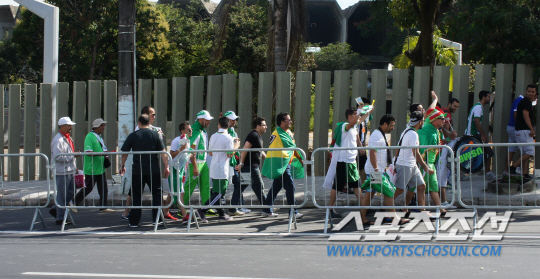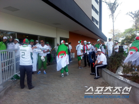 경기 며칠전부터 예상됐던 그림이다. 알제리의 베이스캠프가 차려진 브라질 상파울루 인근의 소로카바. 선수들의 훈련이 진행되는 훈련지의 정문 앞에 알제리 팬들이 모여 들었다. 훈련장에 들어갈 수 없다는 사실을 알고도 알제리 대표팀 유니폼을 입고, 국기를 들은 50여명의 팬들이 훈련장 정문앞에 진을 쳤다.