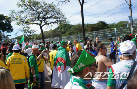 '역대 최강'의 대표팀이 꾸려졌다며 기대를 가득 품은 알제리 팬들이 브라질을 대거 찾았다. 알제리 축구팬에 따르면 그 규모가 4000여명에 이른다. 열정이 대단하다. 알제리에서 브라질까지 직항 항공편이 없다. 환승 시간까지 더하면 14시간 이상 걸리는 장거리 이동이다. 그럼에도 4000여명의 대규모 응원단이 알제리 대표팀을 위해 브라질을 방문했다.