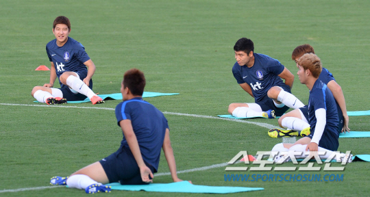 2014 브라질월드컵 홍명보호가 16일 오전(한국시간) 러시아와의 격전지가 될 브라질 쿠이아바에 도착해 첫 훈련을 실시했다. 박주호와 태극전사들이 쿠이아바 마투그로수 연방대학 경기장에서 스트레칭으로 훈련을 준비하고 있다. 대표팀은 오는 18일 쿠이아바 아레나 판타날 경기장에서 러사아와 조별예선 1차전 경기를 펼친다. 쿠아아바(브라질)=최문영 기자 deer@sportschosun.com