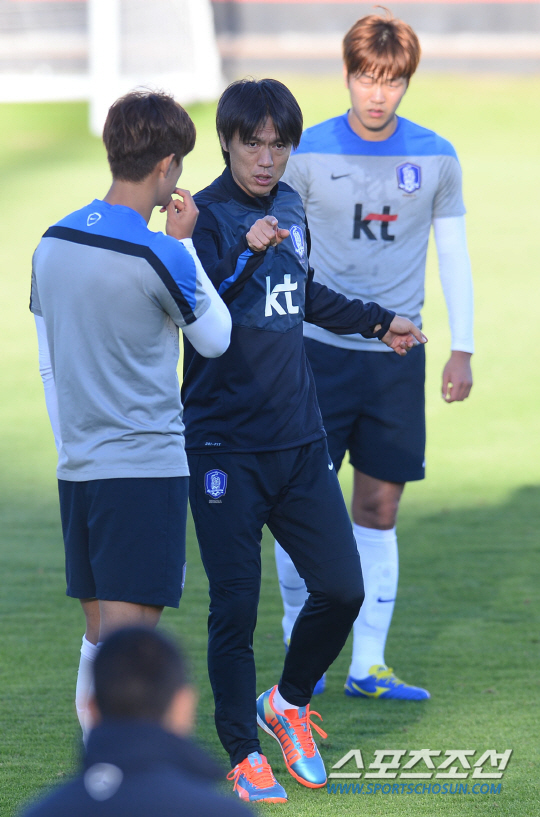 브라질월드컵 조별예선 2차전을 앞둔 홍명보호가 20일 오전(한국시간) 이구아수 플라멩고 경기장에서 알제리전을 향한 훈련에 돌입했다. 홍명보 감독이 윤석영과 김영권에게 수비훈련을 지시하고 있다.