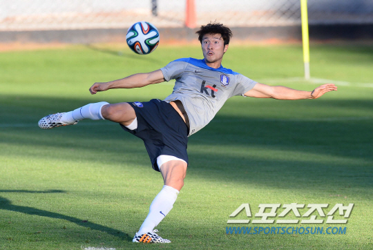 브라질월드컵 조별예선 2차전을 앞둔 홍명보호가 20일 오전(한국시간) 이구아수 플라멩고 경기장에서 알제리전을 향한 훈련에 돌입했다. 공격훈련을 하던 박중우가 문전을 향해 슈팅을 날리고 있다.