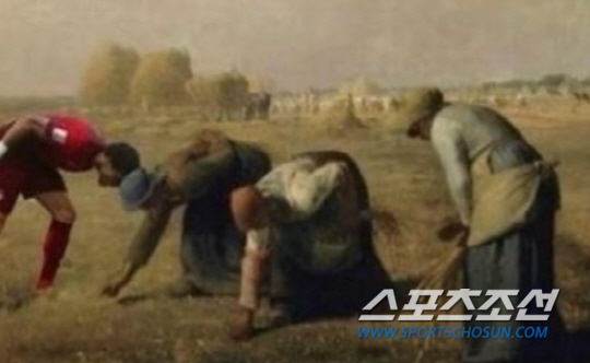 17일 조별리그 G조 1차전 독일-포르투갈전, 전반 37분 쓰러진 토마스 뮐러의 머리를 들이받은 '박치기왕' 페페의 퇴장은 충격적이었다. 조 1위 결정전으로 불린 이 경기에서 포르투갈이 0대4로 패하며 G조의 판세가 뒤엉켰다. 캐나다의 한 축구기자가 뮐러와 페페의 모습을 레고블럭으로 재현해 올린 사진은 트위터를 타고 전세계로 퍼져나갔다. 국내 네티즌은 밀레의 명화 '이삭줍기'에 페페를 교묘하게 합성했다. 'nayo****'라는 아이디의 네티즌이 17일 새벽 '이삭줍는 페페'라는 제목으로 커뮤니티사이트 루리웹에 올린 기발한 사진이 SNS와 온라인을 타고 급속도로 퍼져나가며 웃음을 유발했다.