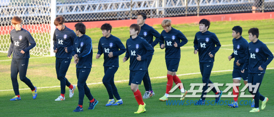 2014 브라질월드컵 조별예선 1차전에서 러시아를 상대로 1대1 무승부를 거둔 홍명보호가 19일 오전(한국시간) 훈련캠프인 이구아수 플라멩고 경기장에 도착해 회복훈련을 실시했다. 태극전사들이 가벼운 러닝을 하며 회복훈련에 열중하고 있다. 18일 쿠이아바 경기에서 무승부를 기록한 대표팀은 23일 포르투 알레그레의 에스타디오 베이라리오 스타디움에서 알제리와 2차전 승부를 펼친다. 이구아수(브라질)=최문영 기자 deer@sportschosun.com /2014.06.19/