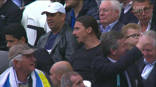 즐라탄 이브라히모비치는 20일(한국시간) 브라질 상파울루의 아레나 데 상파울루에서 열린 브라질월드컵 조별리그 D조 2차전 우루과이-잉글랜드 경기 도중 나세르 알 켈라이피 PSG 회장과 함께 관중석에서 관전중인 모습이 잡혔다.