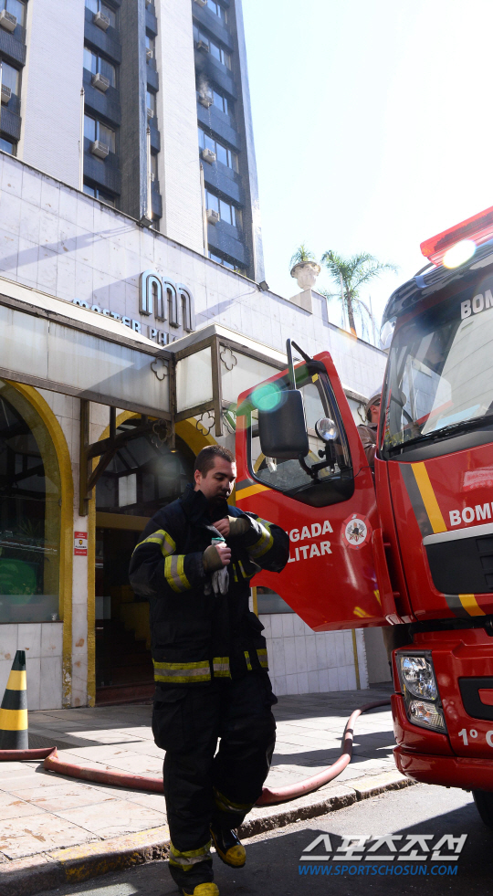 2014브라질월드컵 한국과 알제리의 조별예선 2차전이 예정된 포르투 알레그레의 기자단 숙소에 22일 오전 12시40분 (한국시간) 화재가 발생했다. 기자단 전원이 호텔 밖으로 대피한 가운데 브라질 소방당국이 화재진압을 하고 있다.
