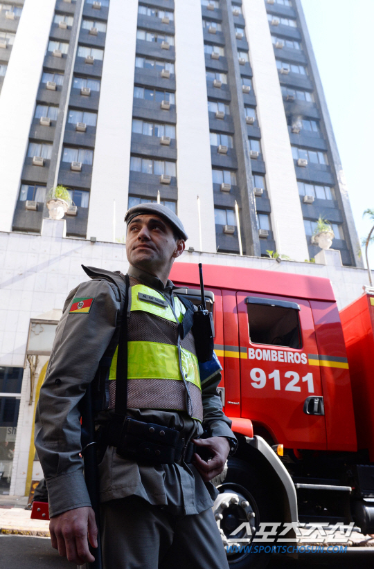 2014브라질월드컵 한국과 알제리의 조별예선 2차전이 예정된 포르투 알레그레의 기자단 숙소에 22일 오전 12시40분 (한국시간) 화재가 발생했다. 기자단 전원이 호텔 밖으로 대피한 가운데 브라질 소방당국이 화재진압을 하고 있다.