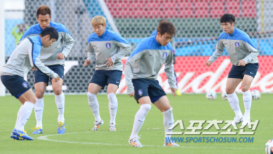 2014브라질월드컵에서 알제리와 조별예선 2차전을 하루 앞둔 홍명보호가 22일(한국시간) 포르투 알레그레의 에스타디오 베이라리오 경기장에서 훈련을 실시했다. 태극전사들이 코어트레이닝으로 경기장 환경에 적응하고 있다.