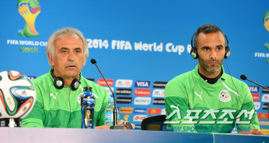 2014브라질월드컵에서 대한민국과 조별예선 2차전을 하루 앞둔 알제리의 바히드 할리호지치 감독과 골키퍼 세드리크 시 무함마드가 22일 에스타디오 베이라리오 경기장에서 기자회견을 갖고 있다.