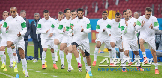 홍명보호와 2014브라질월드컵 조별예선 2차전을 앞둔 알제리 선수들이 22일 오전(한국시간) 포르투 알레그레의 에스타디오 베이라리오 경기장에서 적응훈련을 실시했다. 알제리 대표팀은 훈련공개시간인 초반 15분을 러닝과 스트레칭으로 채웠다.